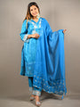 This 3 piece cotton silk suit with organza Dupatta is a perfect blend of comfort and elegance. The cotton silk fabric provides a soft and luxurious feel, while the organza Dupatta adds a touch of class. Perfect for any occasion, this suit will make you stand out with its beautiful and stylish design. With Tila work on neckline.