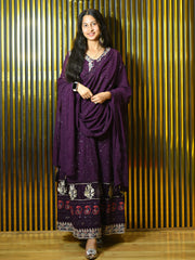 Peacock Blue Tissue Shimmer Suit With Dupatta